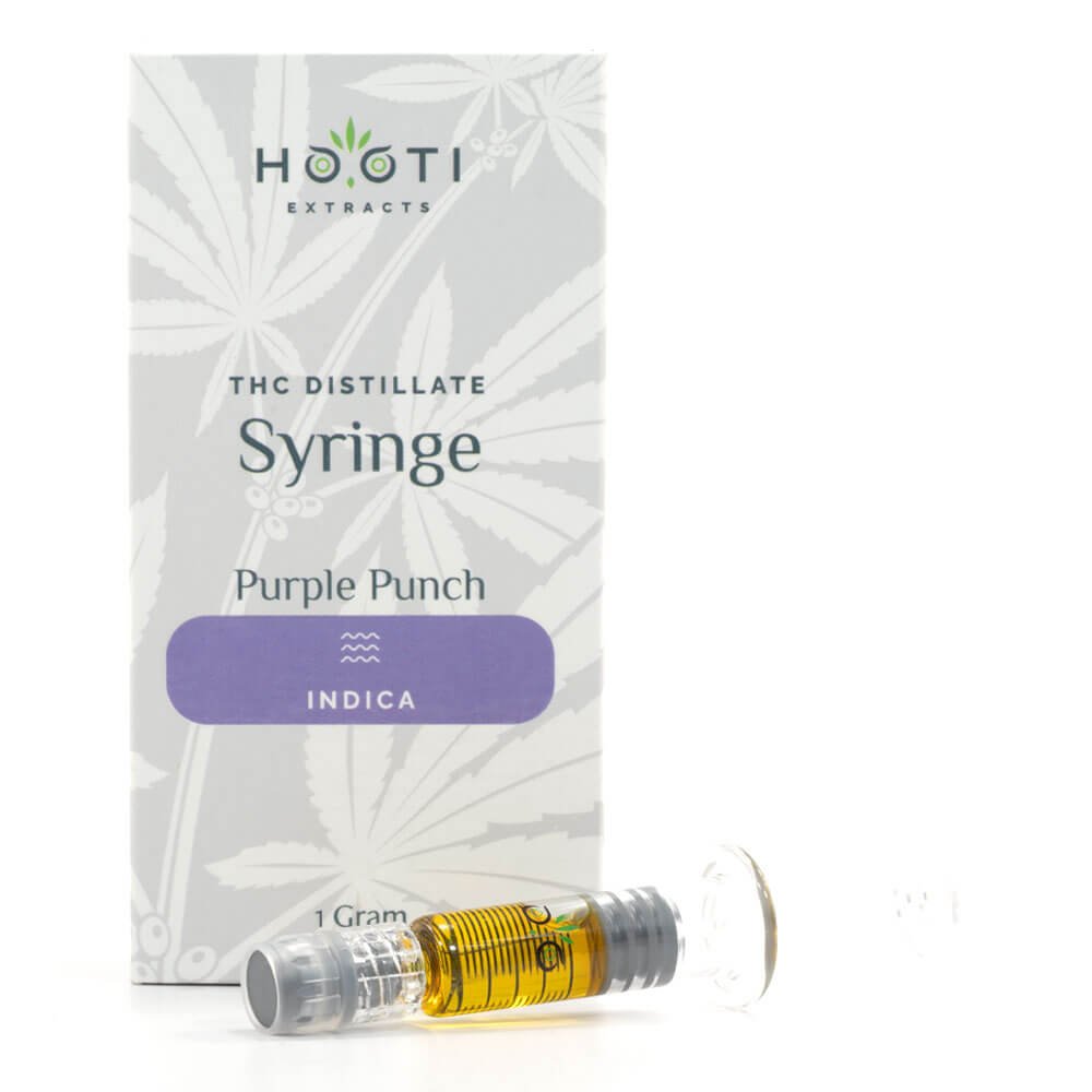 Hooti Extracts is proud to introduce their Purple Punch THC Distillate! Each THC Distillate is reintroduced with strain-specific terpenes. The result is a perfect blend of flavour and medical benefits. Each Syringe Includes 1 Gram of Purple Punch THC Distillate